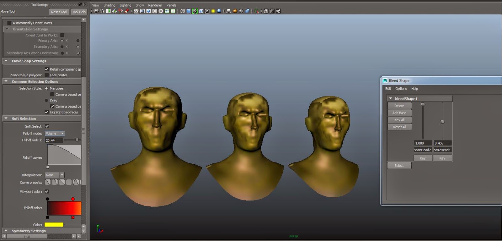We first created our face shapes on Maya by grab the facial features around, I went for a angry skinny look. We then took this into Maya, duplicated the face twice, moved parts of each of the duplicated faces and put on a Blend Shape, so made it so we could then move the facial features of the first head, causing it to smile, frown, or raise an eyebrow, depending on what we done to the duplicates. I have a raised eyebrow on one and a pulled out nose on the other.